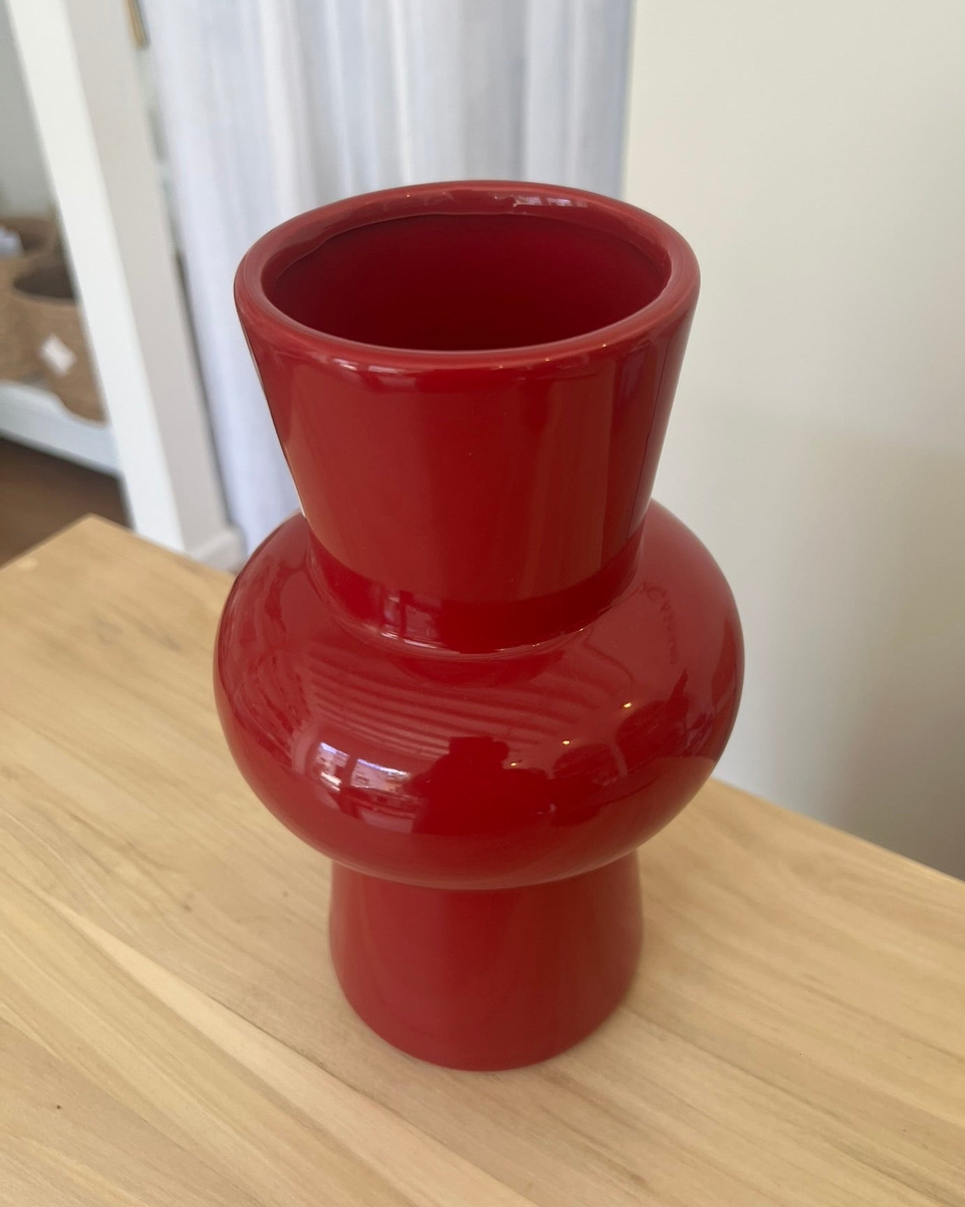 Una pieza con presencia y carácter. El florero Pura destaca por su forma escultórica y su intenso tono rojo, ideal para sumar un toque vibrante a cualquier ambiente. Perfecto para flores naturales o como objeto decorativo por sí solo. Hecho en cerámica con acabado brillante que realza su diseño moderno y sofisticado.