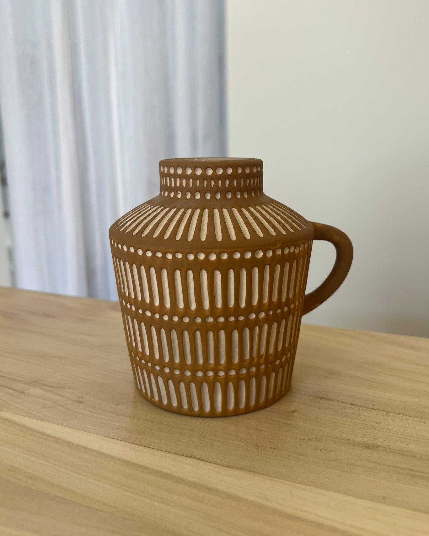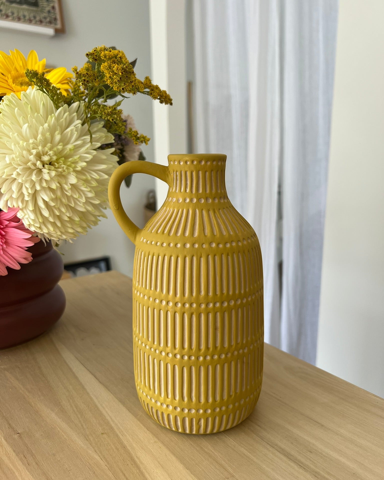 Su textura artesanal y color cálido aportan un acento vibrante a cualquier espacio.